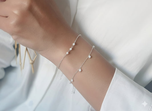VESTA 切面銀球小珍珠手鍊/腳鍊