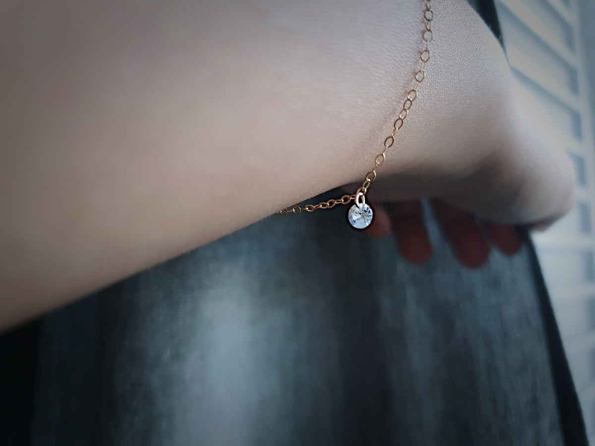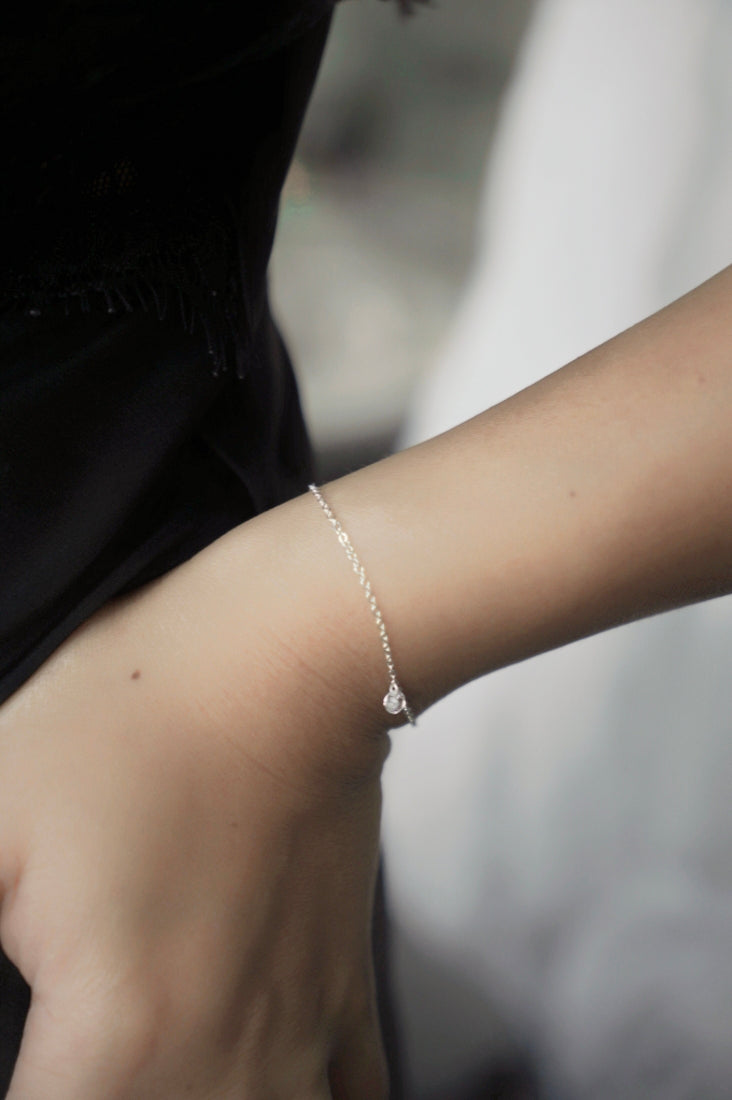極簡的裸水晶點綴在手鍊上,鑽石型的切割在任何角度看都非常完美,通過光線折射出閃閃發光的紋路,簡約的設計可以讓你天天配戴,或送給重要的人。