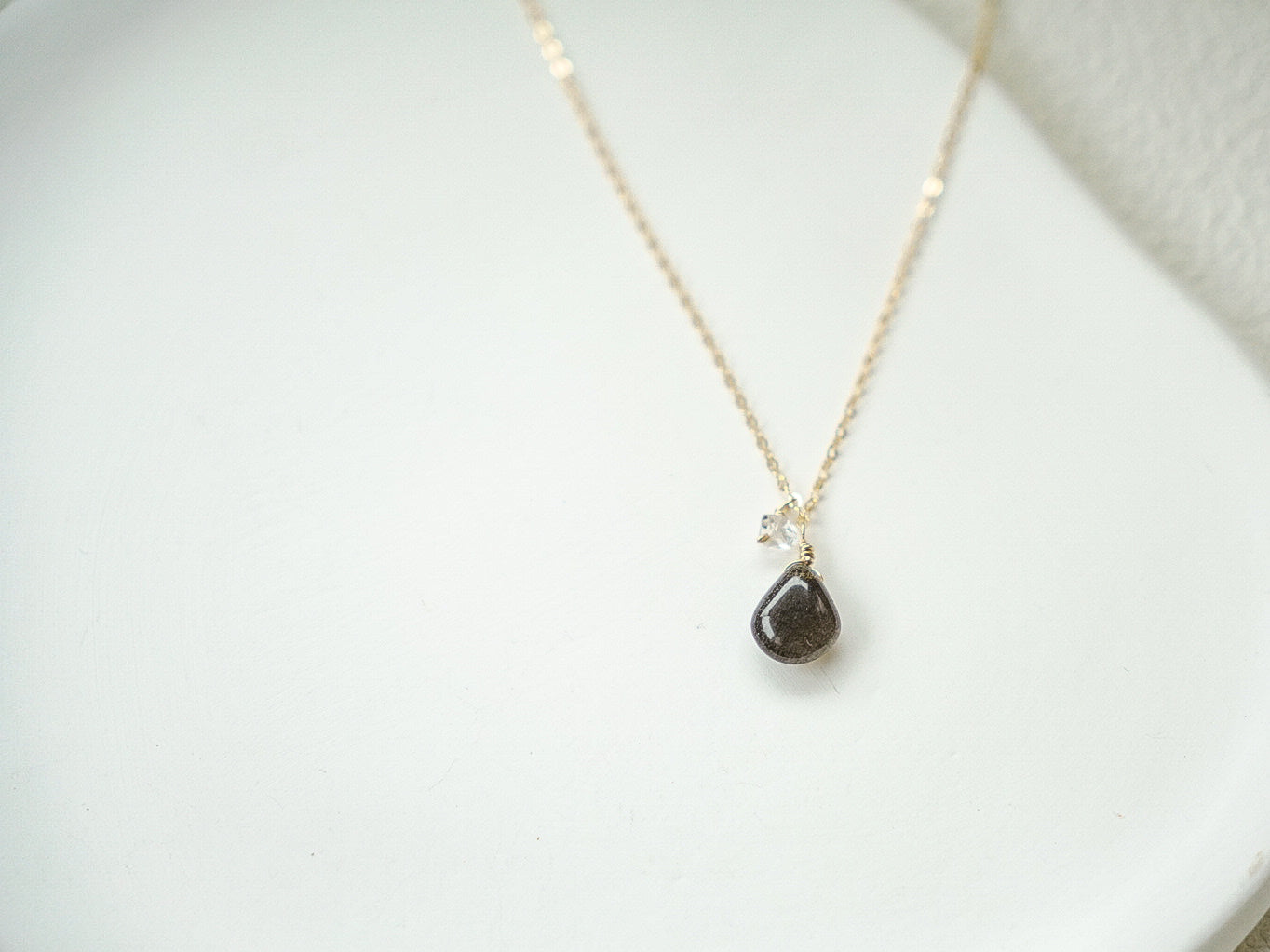 稀有黑太陽石&赫基默鑽石項鍊