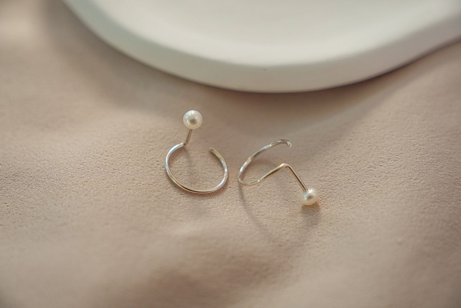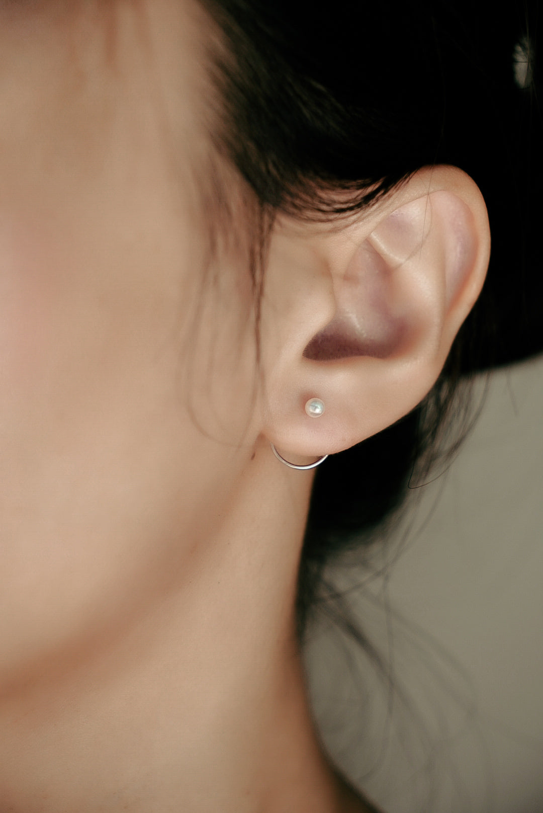 簡單小珍珠耳環,2way 兩種戴法,背面是一個開口圈,不需要耳扣也能配戴。