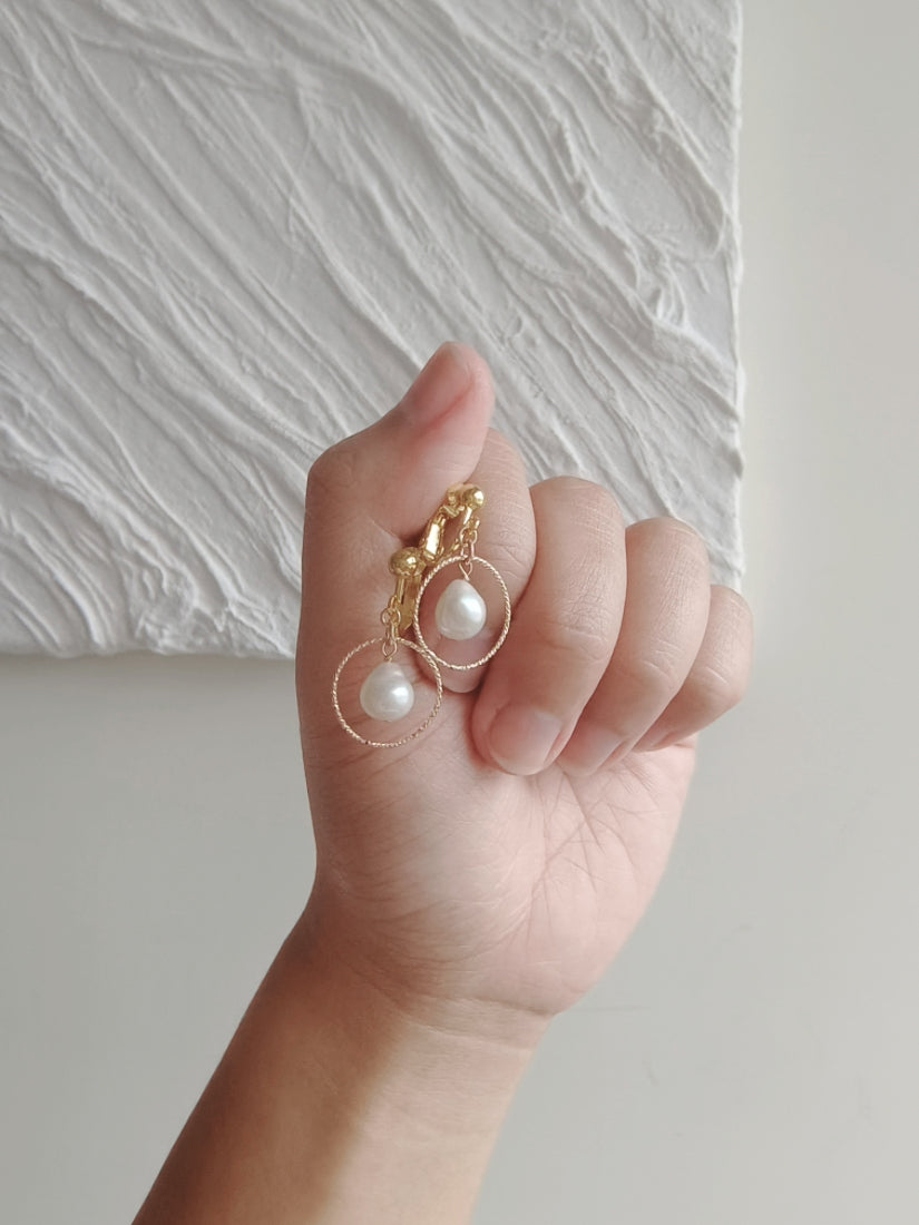 CLIO 水滴珍珠閃閃圓圈耳環