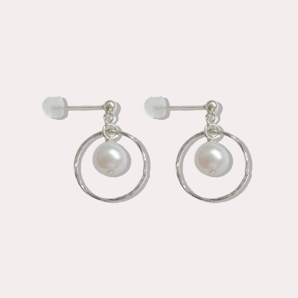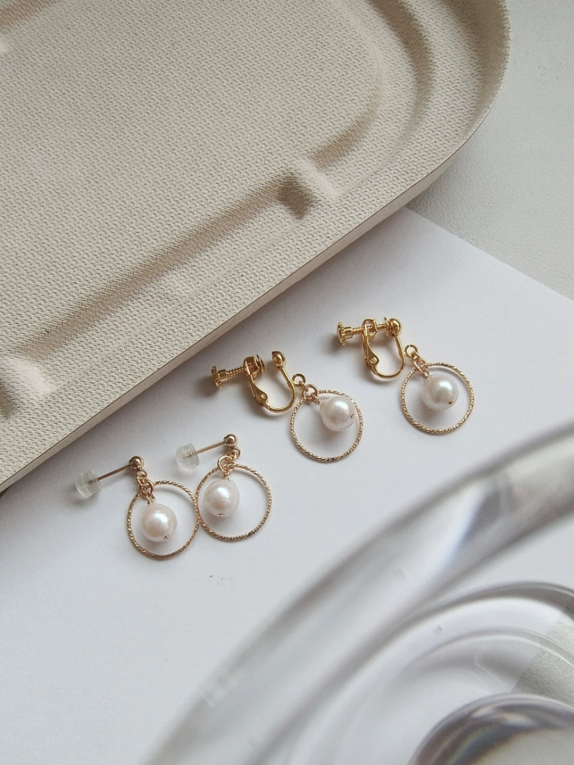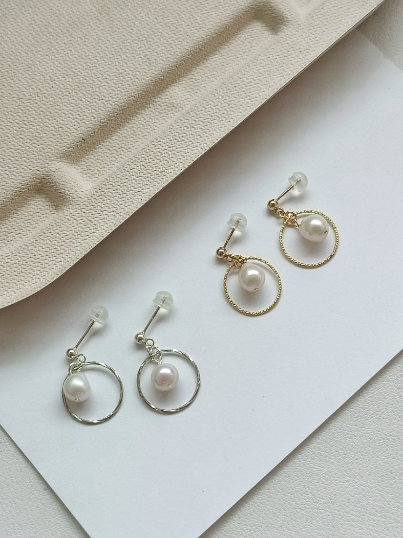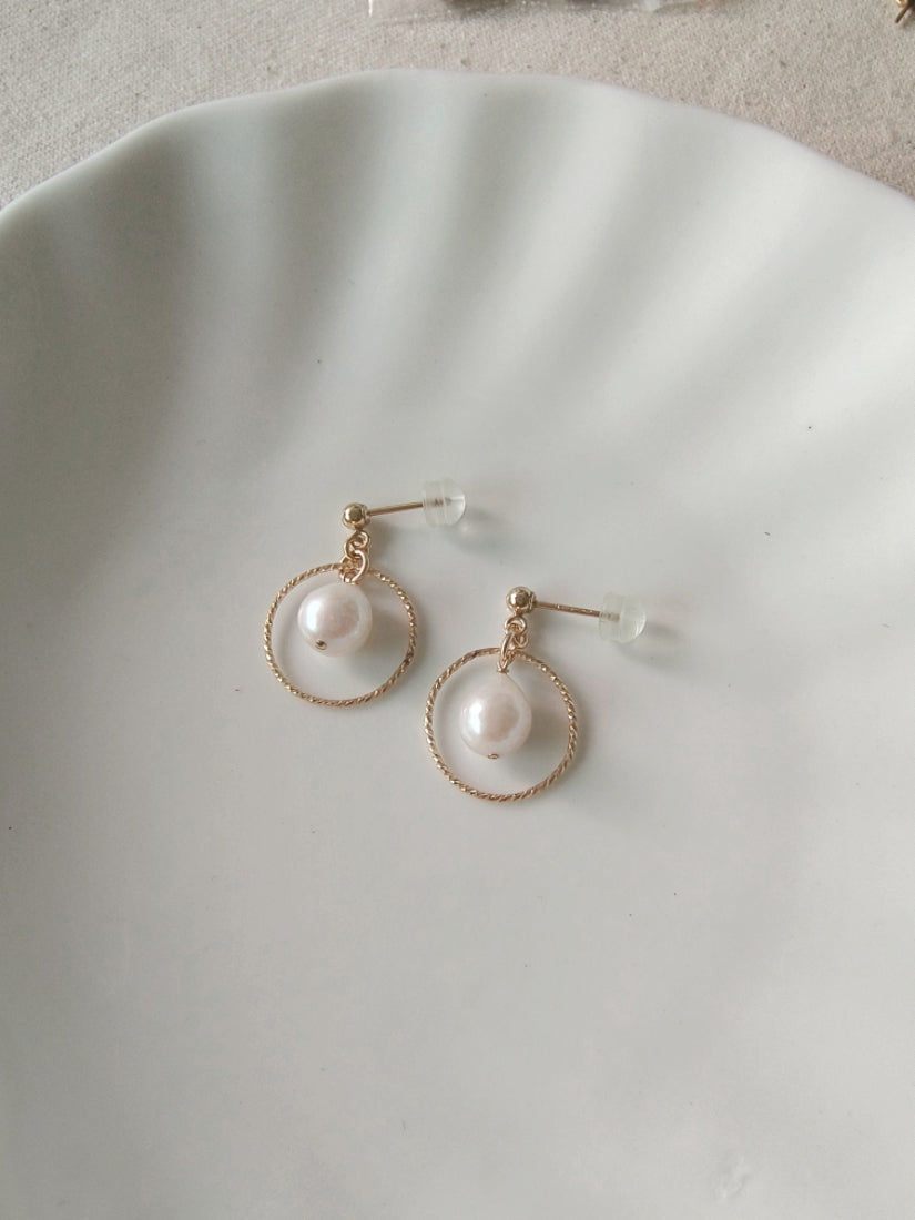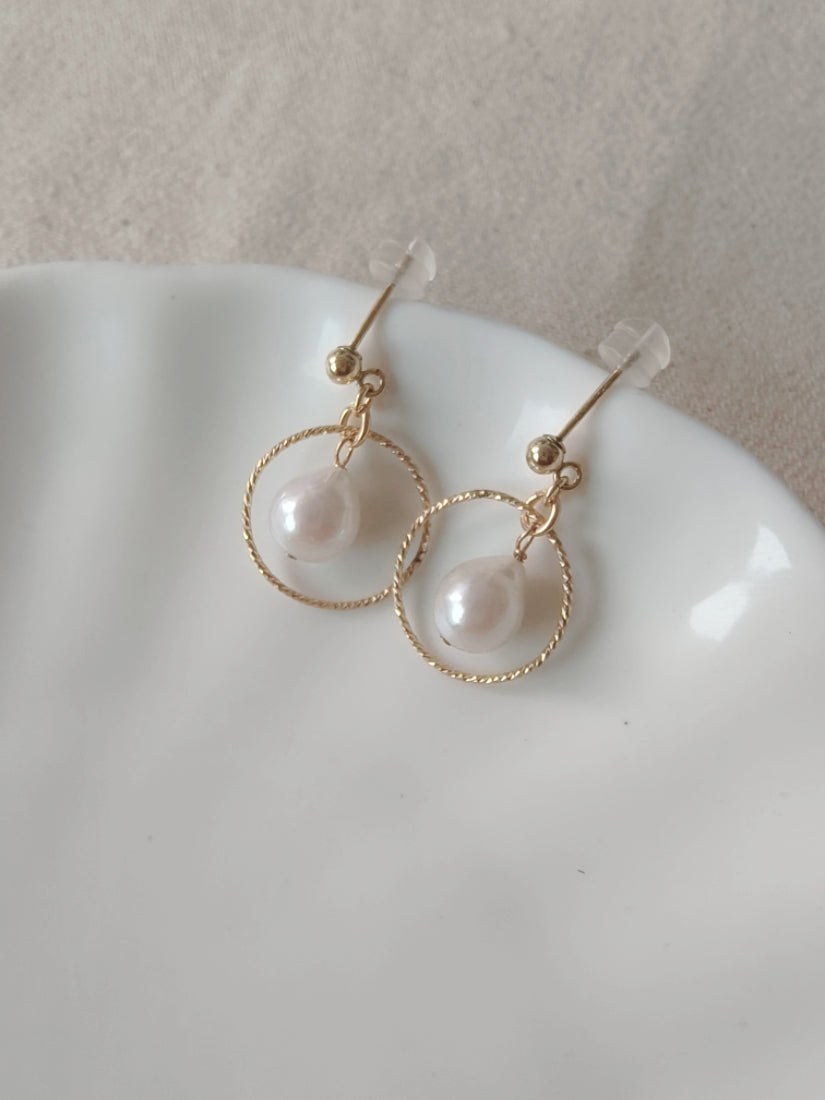 耳環選用強光水滴型天然淡水珍珠,每顆皮光都很棒,搭配閃亮亮的圓圈,固定在小球耳釘之下,簡約日常的款式非常適合送禮或是自用。