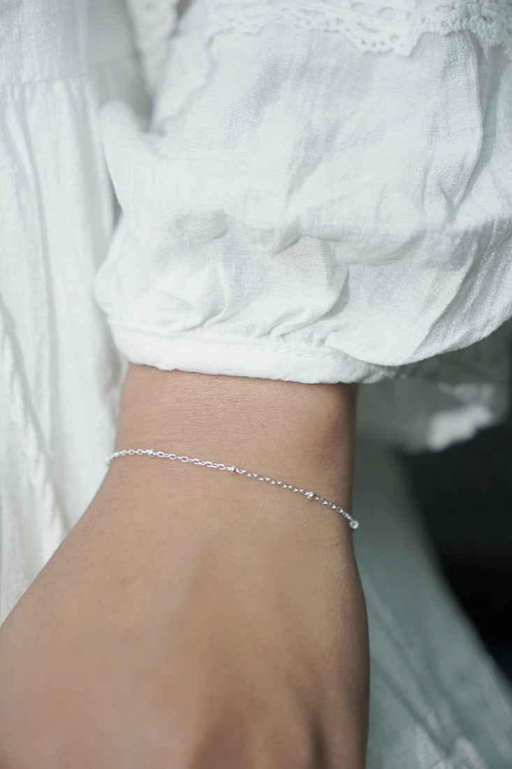 此款925純銀小細珠手鍊/腳鍊,以細鍊串起小巧銀珠,清新簡約卻極具氣質。