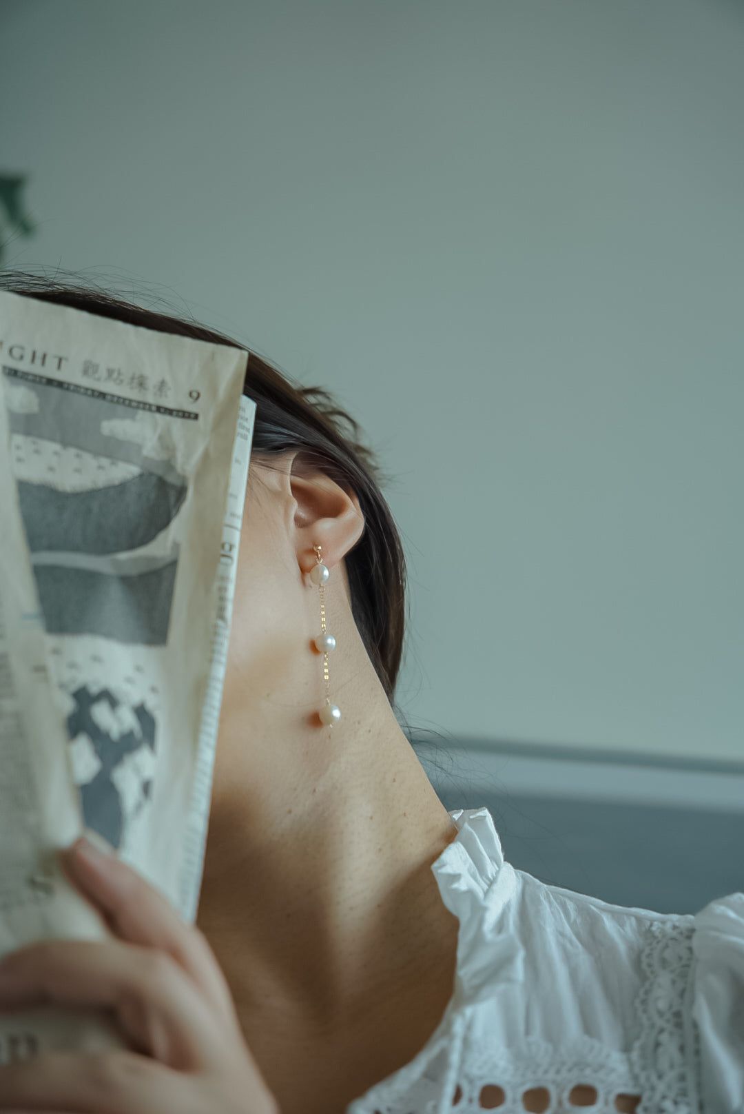 LAVA 珍珠鏈長耳環