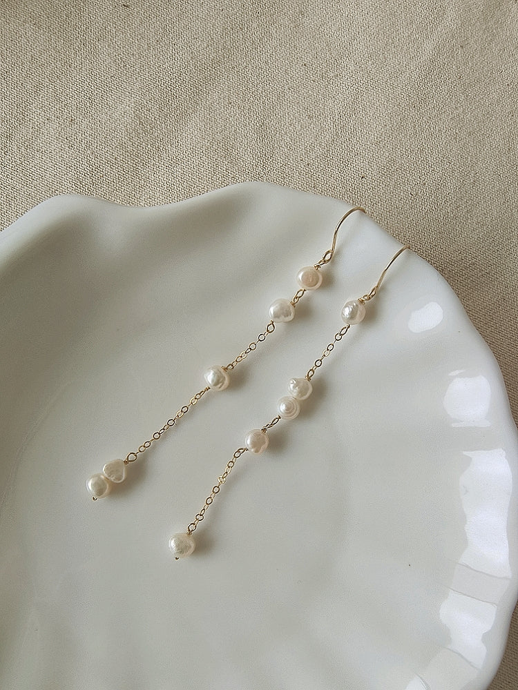 LETO 不對稱珍珠雨滴長耳環