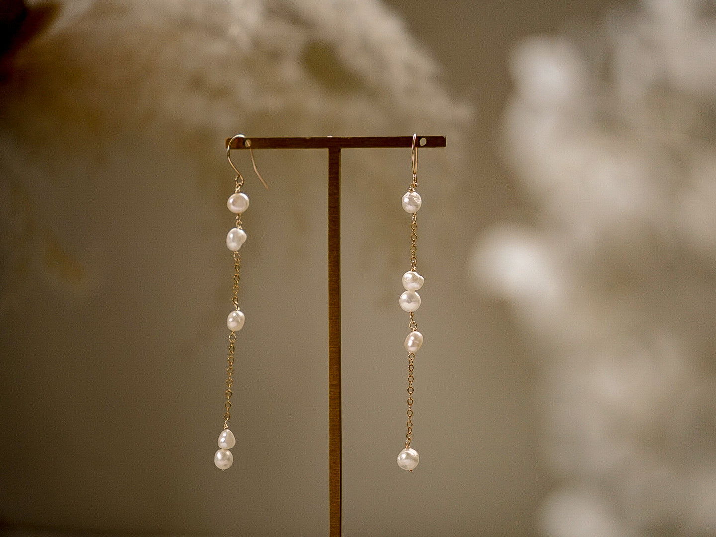 耳環採用了巴洛克式的不規則珍珠設計,每顆珍珠都獨一無二,充滿個性與自然的美感。不對稱的設計使每一對耳環都獨具匠心,彰顯出妳的獨特風格和品味,無論在哪個場合,都能成為妳的專屬之選。