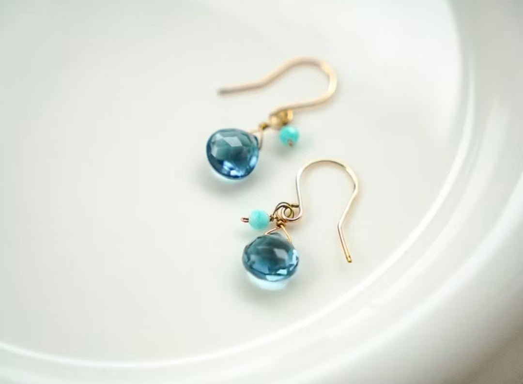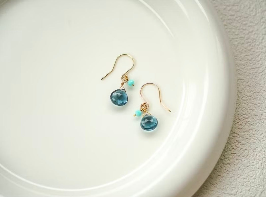 清透沉穩深藍色(也稱倫敦藍色)的托帕石擁有完美切割面,會隨著反光而折射,且配有天然天河石做完美結尾。