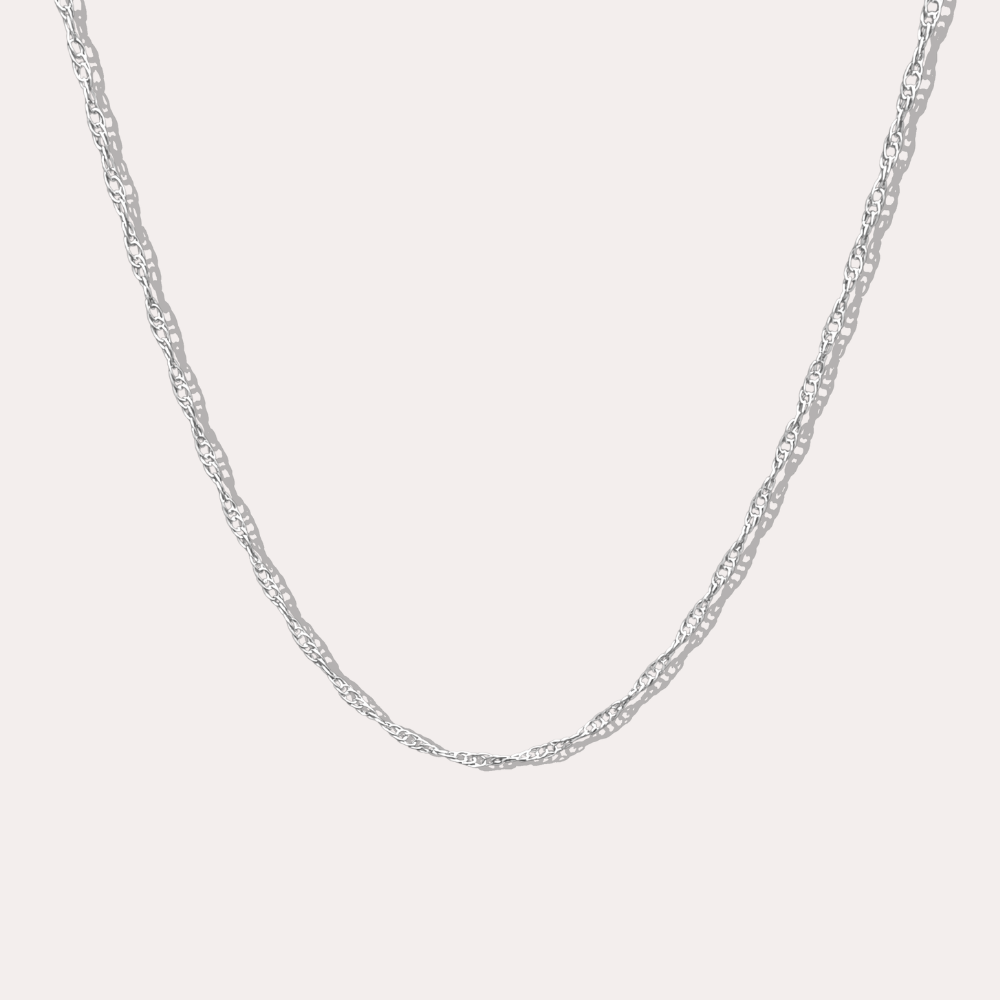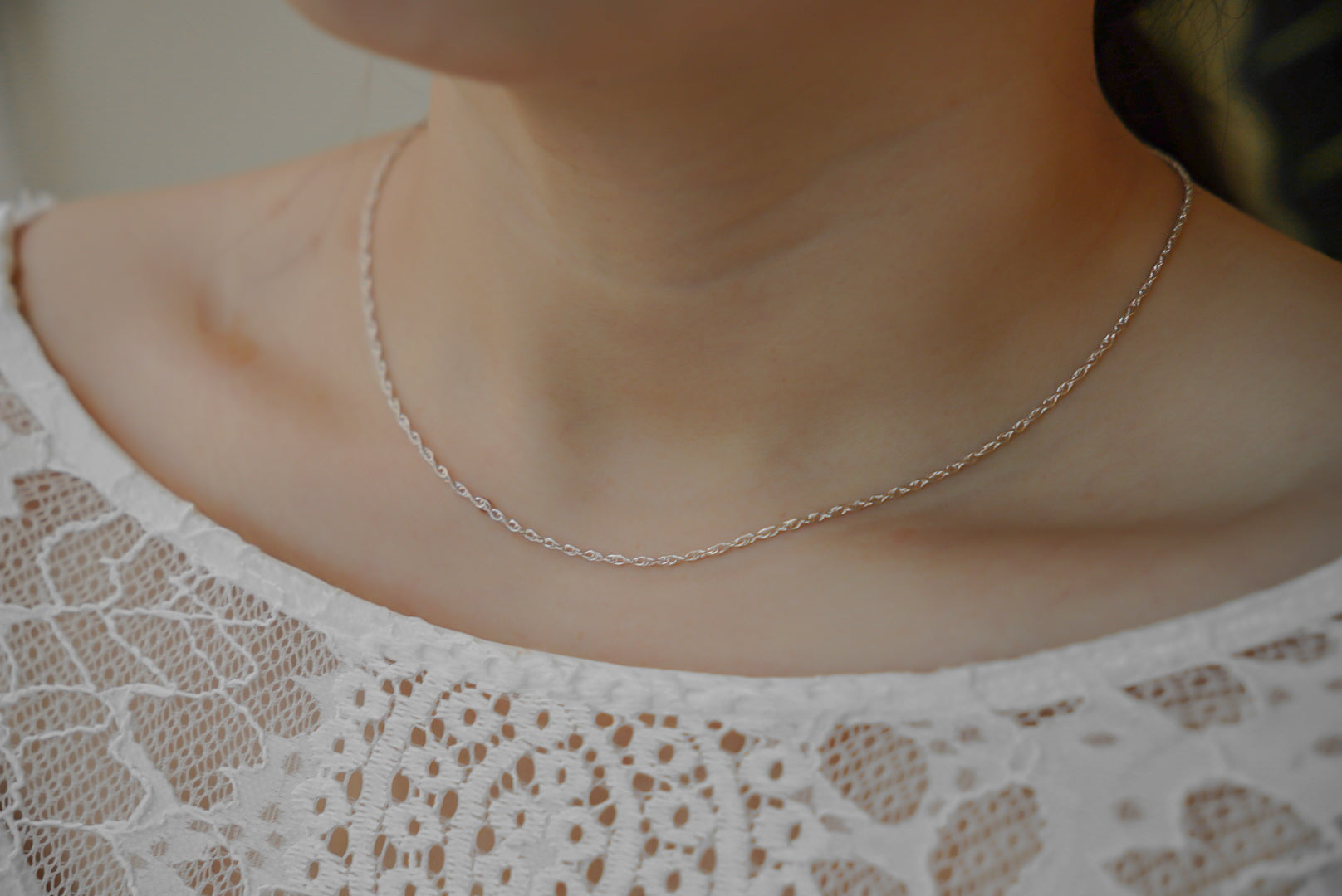 細緻1.2mm鍊身如水波閃耀,線條柔順貼頸,低調中帶著微光。925純銀或14KGF包金材質,防水防過敏,極簡百搭,單戴或疊戴皆能展現優雅氣質。