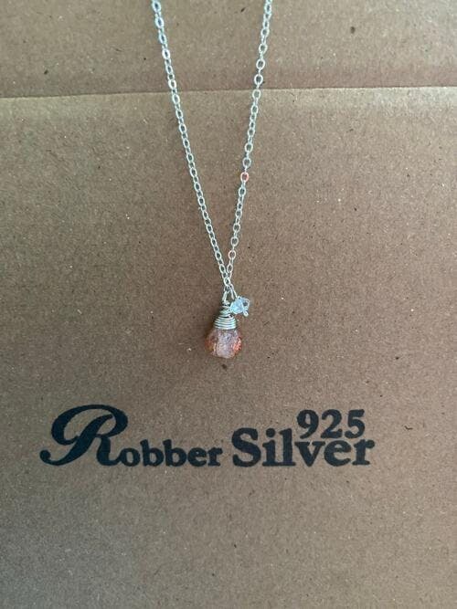 這款項鍊選用了帶有刻面的水滴狀太陽石與小顆赫基默鑽石製成,精巧的墜子設計使得光線在不同角度下,閃耀著不一樣的色彩。赫基默鑽石的純粹透明,映襯出太陽石的暖色光芒,在項鍊末端還特別設計了一顆赫基默鑽石,仿佛在心間輕輕點綴著純粹的能量。每顆太陽石與赫基默鑽石都是大自然的精心創作,擁有獨一無二的模樣,帶給你專屬的靈性光芒。