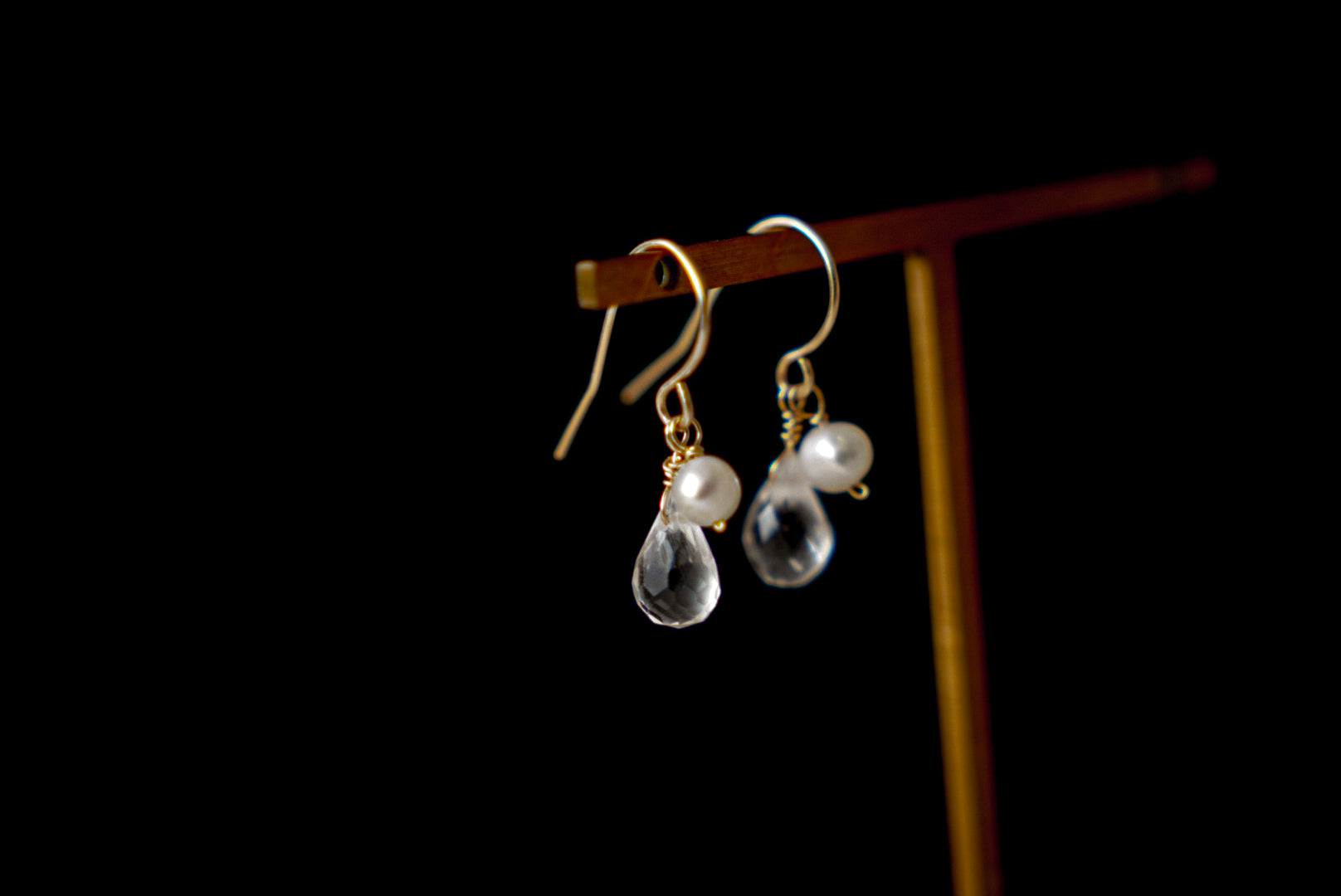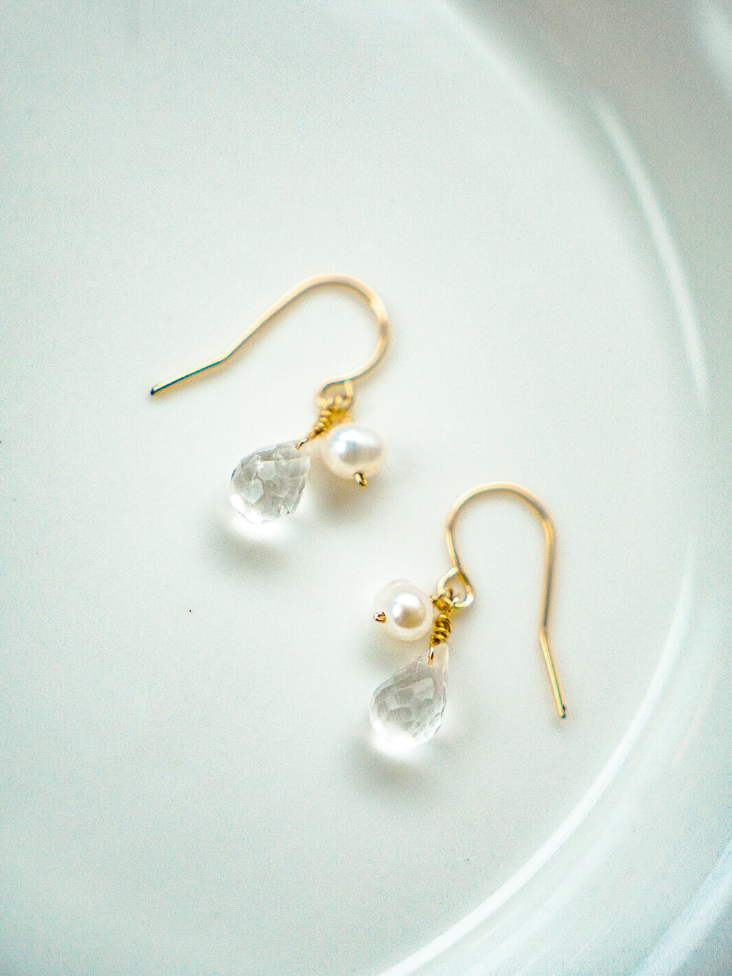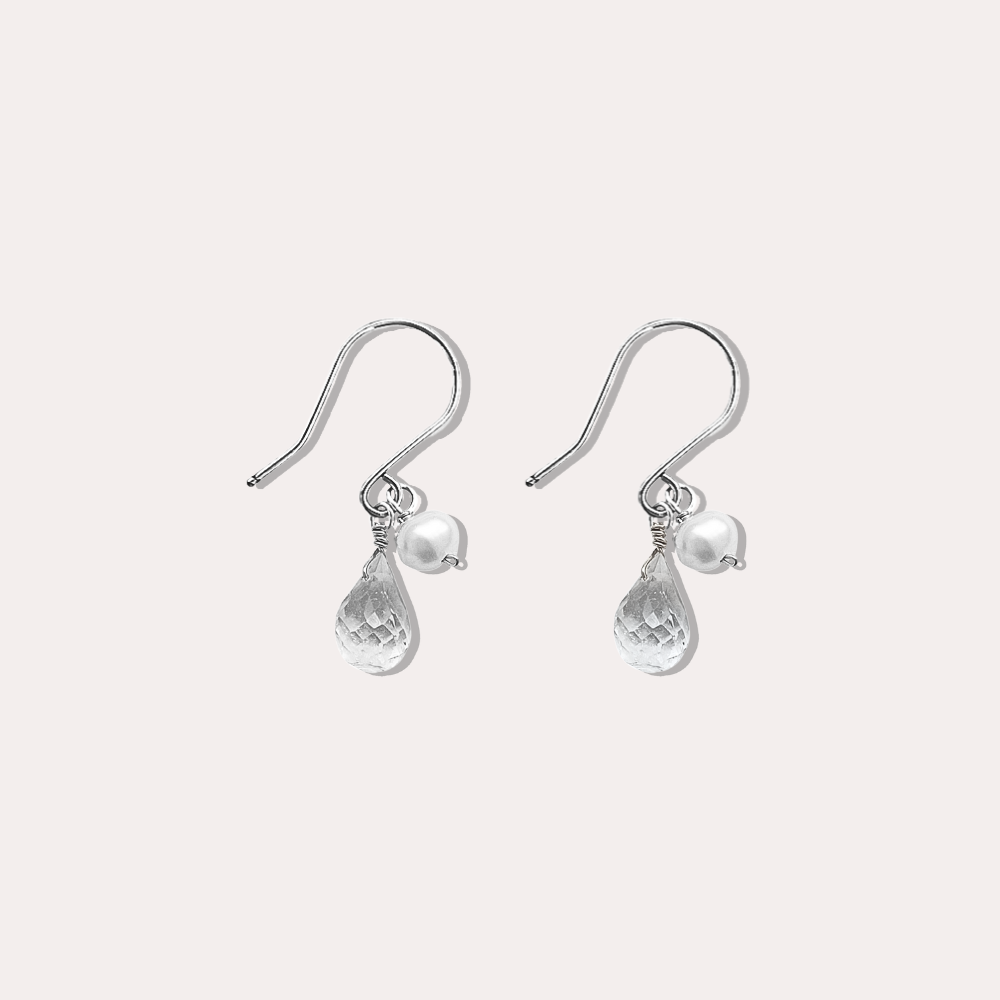 白水晶&珍珠耳環
