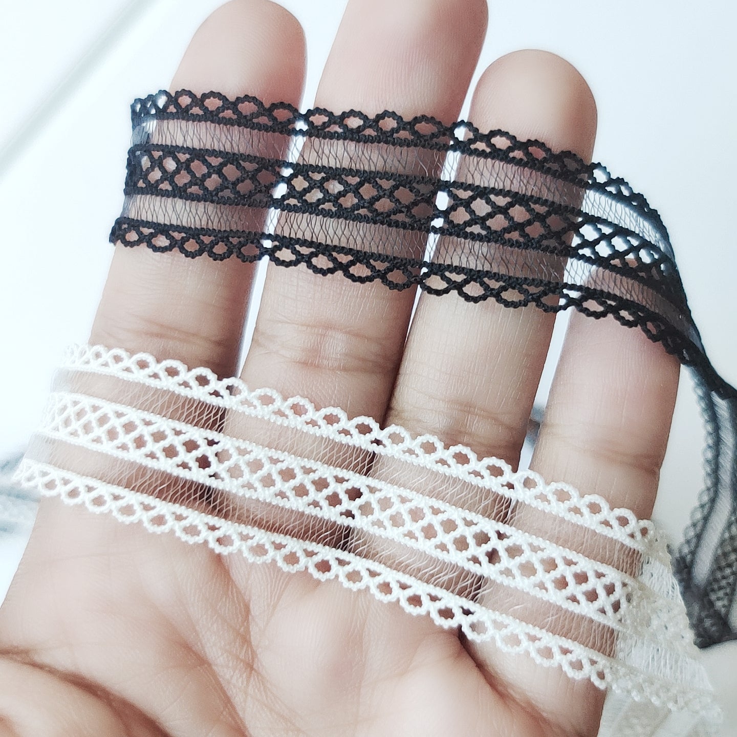 法式三層簍空蕾絲CHOKER-黑/白