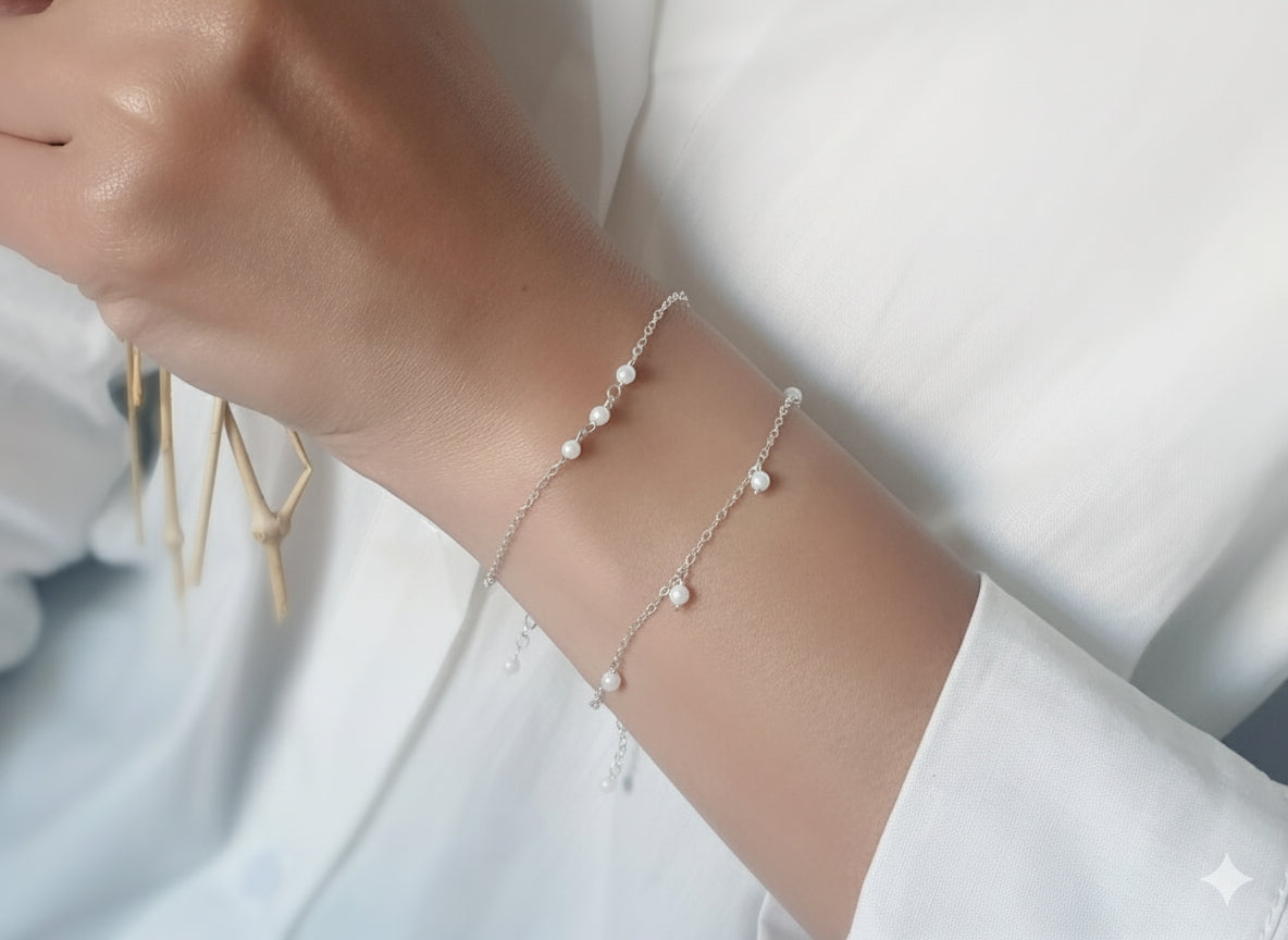 手鍊/腳鍊以925純銀或14KGF搭配,鍊尾再點綴一顆珍珠,細緻中透出獨特心思,是送禮與自戴的溫柔選擇。