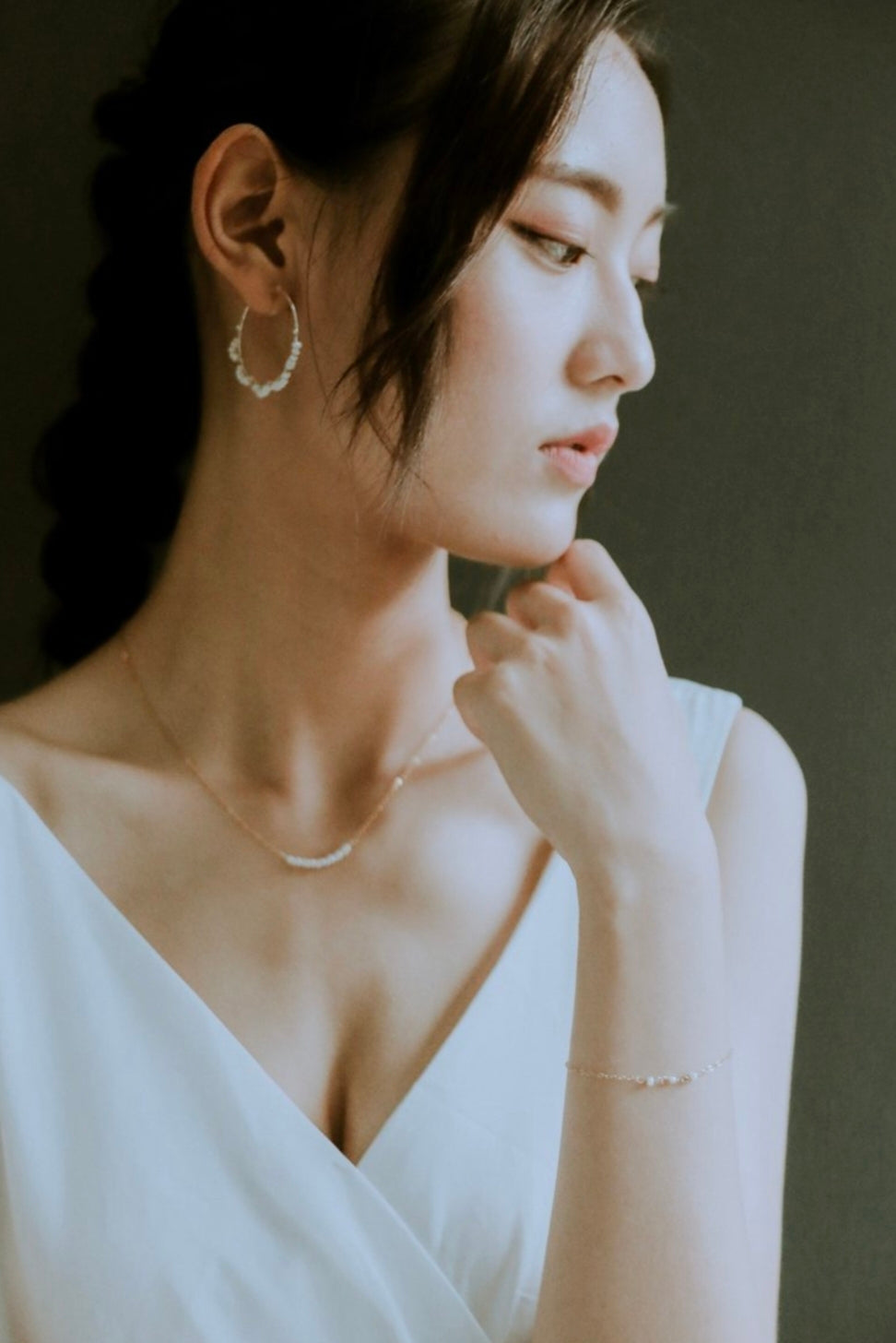 三顆間隔排列的淡水珍珠,清新又百搭。