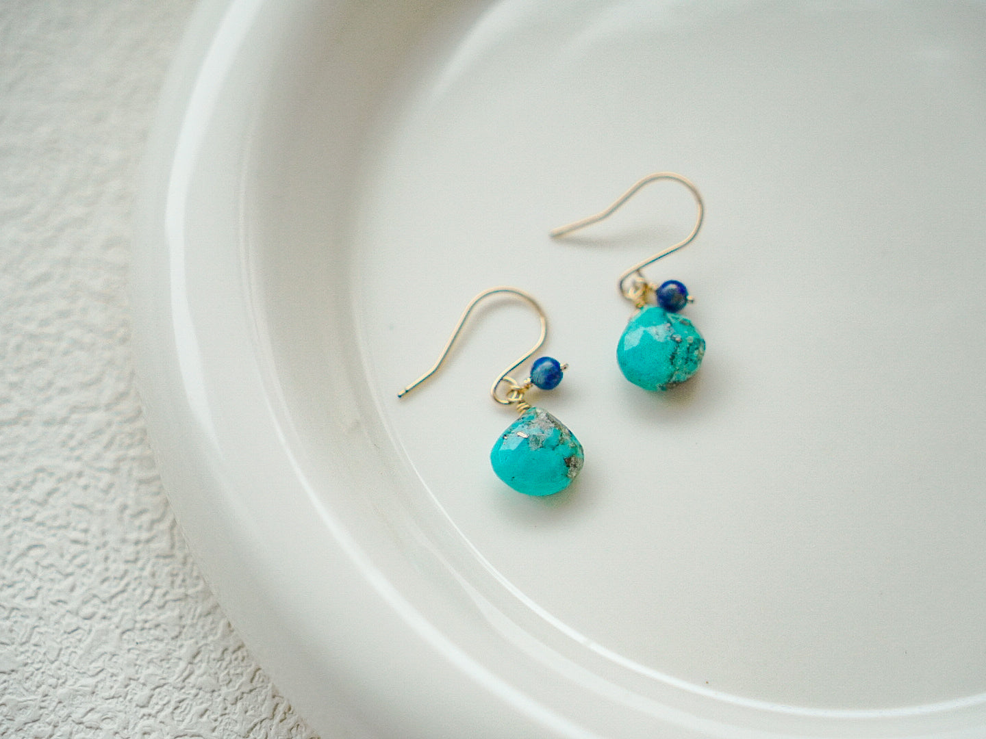 亮藍色的睡美人綠松石搭配深藍青金石,兩種藍色層次很清楚。